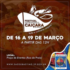 A Cia. Teatral O Castelo das Artes se apresenta durante o Festival Gastronômico Caiçara, realizado pela Prefeitura de São Sebastião. O evento traz a culinária tradicional e diversas atrações para os moradores e turistas que estiverem na Rua da Praia de 16 a 19 de março. Todos as noites, o artista Henrique Cardim fará a performance “O pescador” e, nas tardes de quinta e sábado, intervenções artísticas com a contação dos Mitos e Lendas da cidade serão realizadas junto aos atores Jessyca Biazini, André Nunes, Mario Farias e Vick Araujo.
