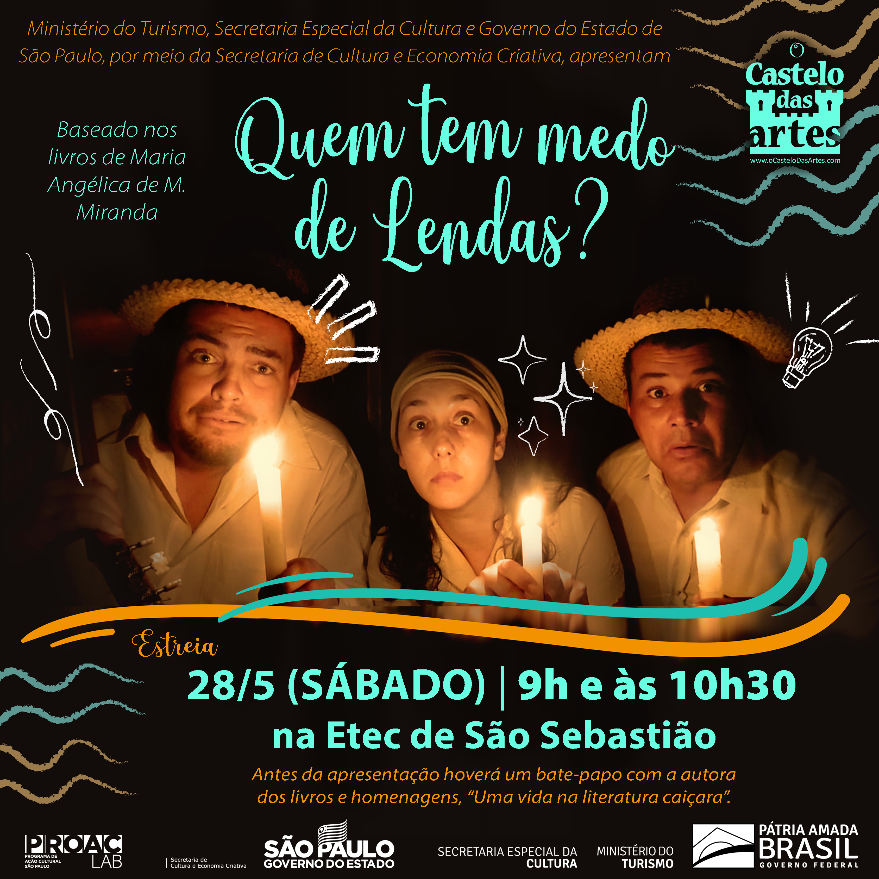 Para mais informações sobre o projeto e a circulação do espetáculo “Quem tem medo de Lendas?”, acesse: www.ocastelodasartes.com, O Castelo das Artes e www.instagram.com/ocastelodasartes, ou (12) 98232.6922.