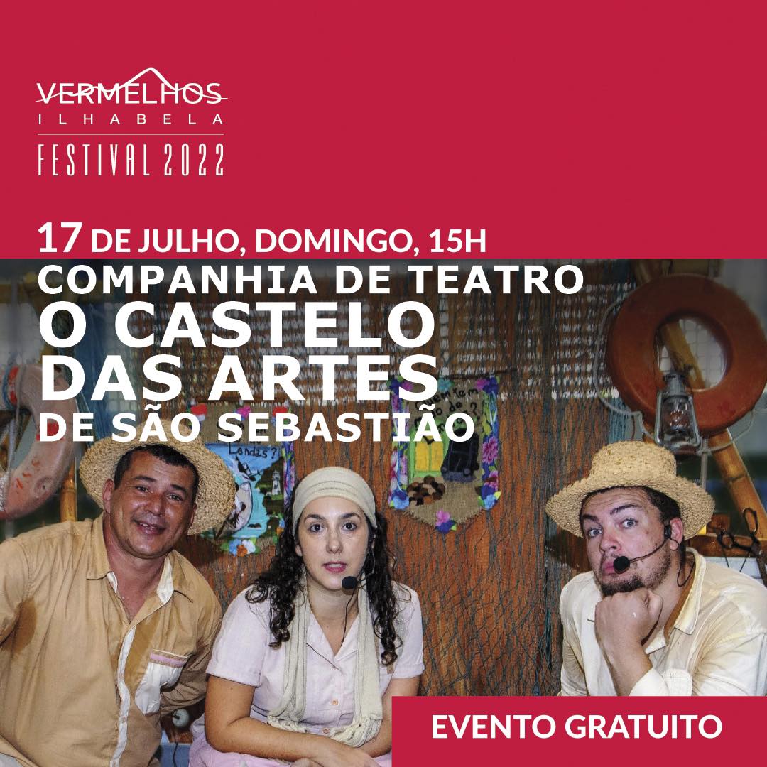 O Festival Vermelhos traz para os palcos de Ilhabela uma apresentação teatral realizada por artistas do litoral norte paulista que evidencia a cultura tradicional Caiçara. A Cia. O Castelo das Artes se apresentará no dia 17 de julho (domingo), às 15h, no Anfiteatro da Floresta, com uma obra que mistura a contação de história e encenações baseada na série literária “Quem tem medo de Lendas”, da sebastianense Maria Angélica de Moura Miranda, que foi lançada em maio deste ano.