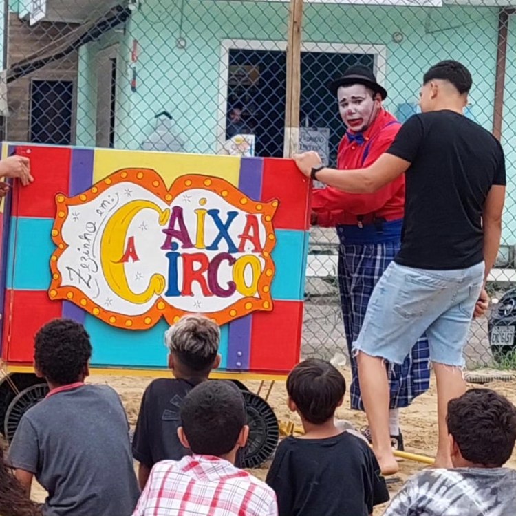 “Zezinho em: A Caixa-Circo” segue em circulação no próximo final de semana e estará no sábado (28/9), às 19h, na Rua da Praia (em frente à Casa da Cultura), e no domingo (29/9), às 10h no Canto do Mar, na rua da feira em frente a EM Cynthia Cliquet Luciano, e às 16h, no CDHU do Jaraguá.