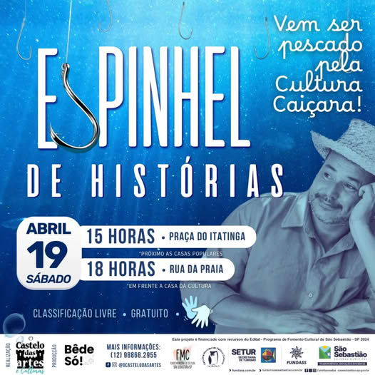 Vem ser pescado pela Cultura Caiçara! Neste sábado (19/04), o espetáculo Espinhel de Histórias chega às praças de São Sebastião com duas apresentações gratuitas e abertas a todos! 15h – Praça do Itatinga (próximo às casas populares) 18h – Rua da Praia (em frente à Casa da Cultura) Comandado pelo mestre contador de histórias HenriqueContinuar lendo "Neste sábado (19/04), o espetáculo Espinhel de Histórias chega às praças de São Sebastião"