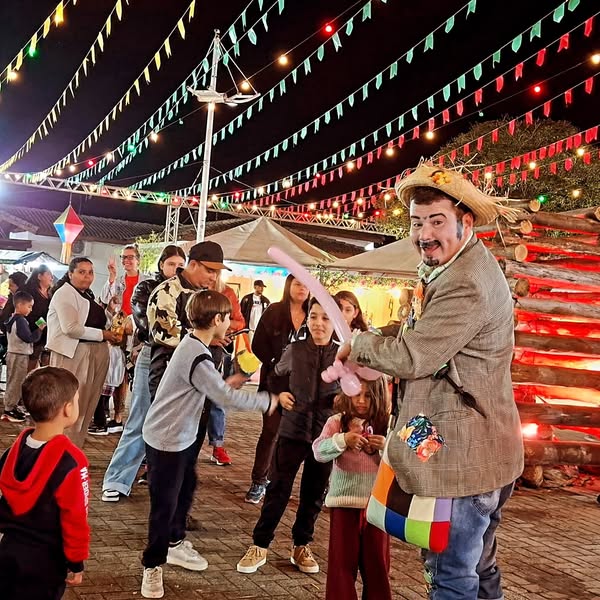 Zé Caipiraço fazendo muitas esculturas de Bexigas no Arraia Caiçara, em São Sebastião. O arraiá é realizado pela Prefeitura de São Sebastião, por meio da Fundass. Vem que está muito animado!