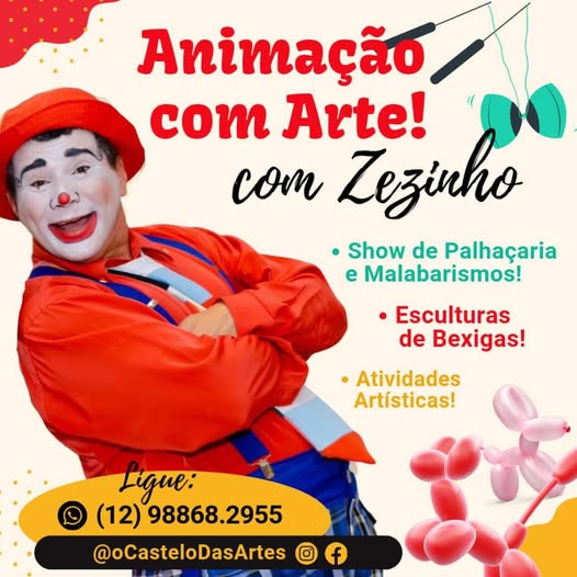 Galera... Olha o Zezinho aí levando muita alegria pras criancinhas e crianções! A nossa animação é com muita arte! • Palhaçaria e Malabarismos • Esculturas de Bexigas • Atividades artísticas Temos vários pacotes para todos os tipos de eventos... Consulte pelo WhatsApp (12) 98868.2955. E todo evento que fazemos ajuda direta e indiretamente a terContinuar lendo "Olha o Zezinho aí levando muita alegria pras criancinhas e crianções!"
