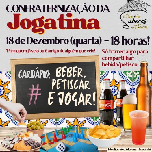 Eitaaa minha gentee... A confraternização de fim de ano da Casa dos Saberes e Fazeres da Cia. O Castelo das Artes é junto com o Grupo Samburá!!! Vamos festejar no estilo Caiçara de antigamente com muita alegria, boa comida, amigos e família. Você é nosso convidado! É DIA 20 DE DEZEMBRO (SEXTA), DAS 19H ÀSContinuar lendo "A confraternização de fim de ano da Casa dos Saberes e Fazeres da Cia. O Castelo das Artes é junto com o Grupo Samburá!"