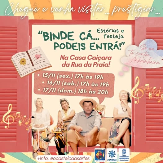 Vem na Casa Caiçara da Rua da Praia pras estórias e festejo com “Binde Cá! Podeis entrá!”.
