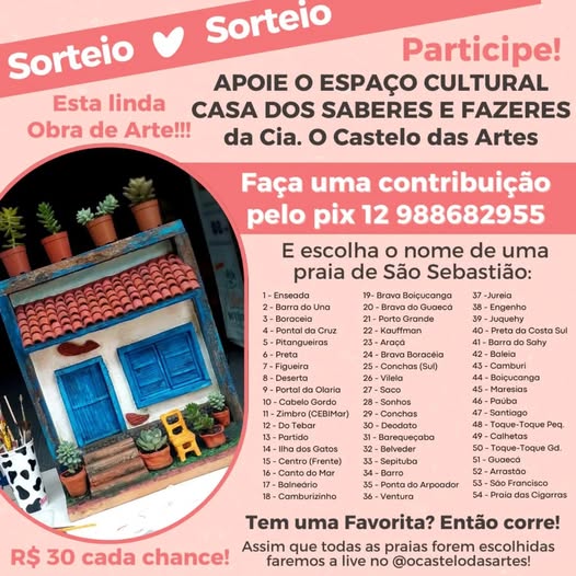 RIFA CULTURAL PARA PAGAR AS DESPESAS FIXAS DE FIM DE ANO DA CASA DOS SABERES E FAZERES!